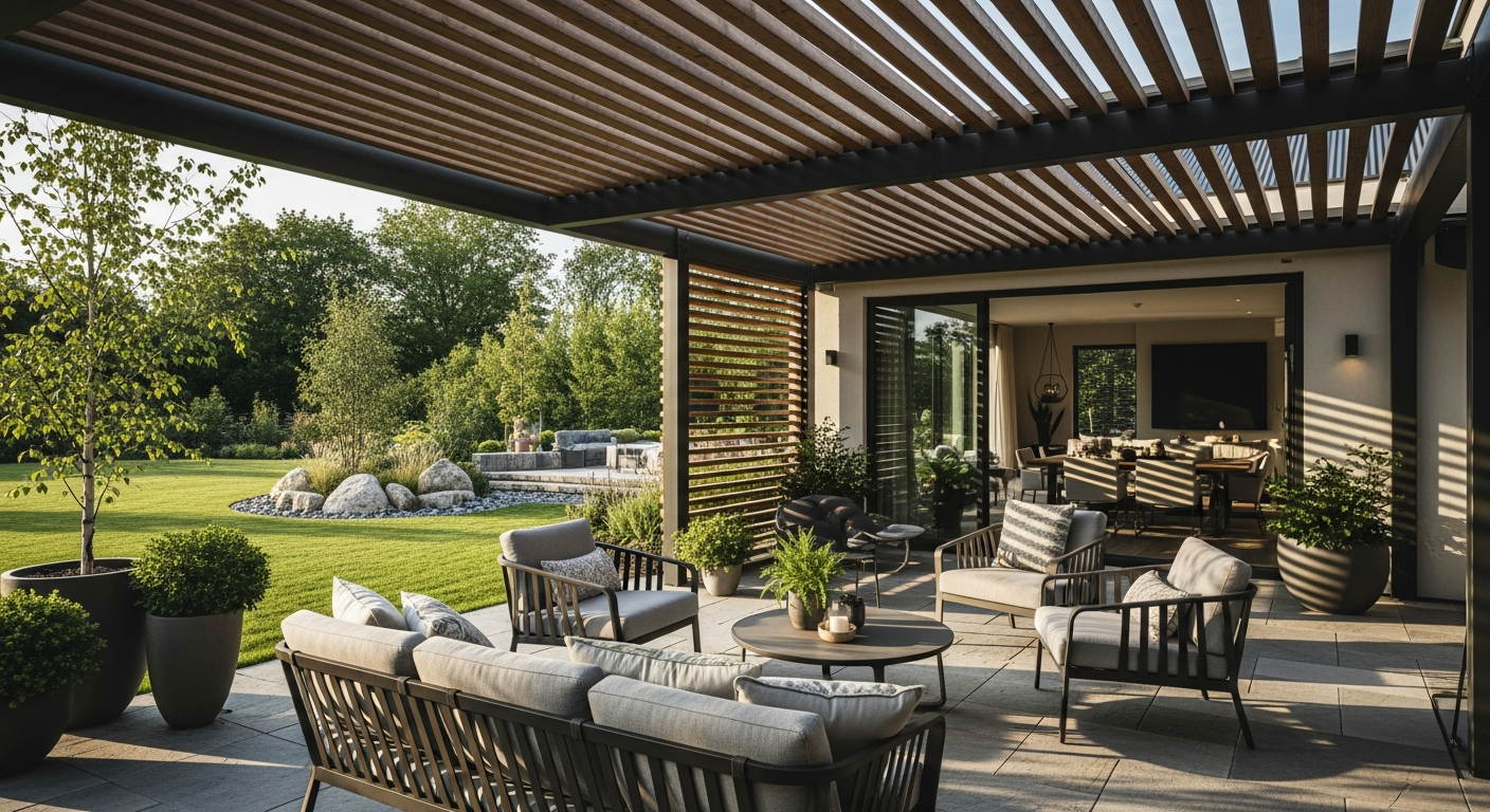 ການອອກແບບທີ່ຢູ່ອາໄສພາຍນອກທີ່ດີສາມາດປ່ຽນແປງພື້ນທີ່ກາງແຈ້ງຂອງທ່ານໃຫ້ກາຍເປັນສ່ວນຂະຫຍາຍທີ່ມີປະໂຫຍດ ແລະ ໜ້າສົນໃຈຂອງເຮືອນ. ໂດຍການລວມເອົາໂຄງສ້າງທີ່ໃຫ້ຮົ່ມເງົາ ແລະ ກຳນົດຂອບເຂດ, ທ່ານສາມາດສ້າງພື້ນທີ່ດໍາລົງຊີວິດກາງແຈ້ງທີ່ເຊື້ອເຊີນ. ໂຄງສ້າງເຫຼົ່ານີ້ເພີ່ມຄວາມງາມທາງດ້ານສະຖາປັດຕະຍະກຳໃຫ້ກັບສວນ, ເດີ່ນບ້ານ, ຫຼື ເດີ່ນຫຼັງບ້ານ, ສ້າງສະພາບແວດລ້ອມທີ່ເໝາະສຳລັບການພັກຜ່ອນ ແລະ ບັນເທີງ.
